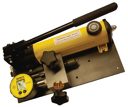 The Additel ADT 914A Pressure Test Pump is a hand operated pressure pump designed to generate pressure from 95% vacuum to 375psi. It is designed for fine pressure adjustment with a high-quality screw press and has a built-in gas-liquid isolator that protects the pump from moisture and dirt to reduce the need for maintenance.