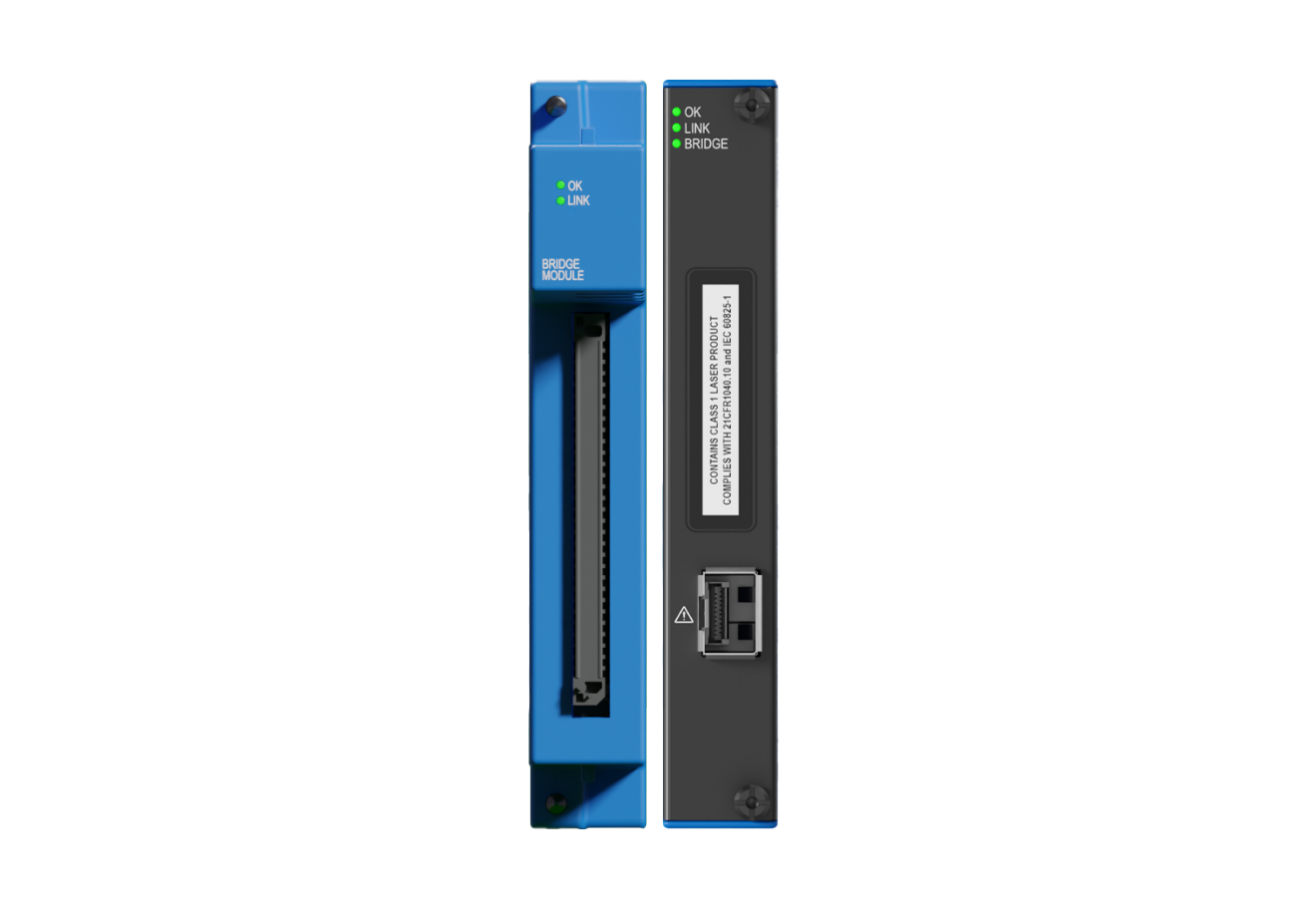 The Bently Nevada Orbit 60R/BRG01 bridge module connects multiple chassis to make a distributed system. This connectivity enables flexible deployments in linear or star topologies and significantly reduces field wiring cost, especially when extending to remote locations. Each Bridge module communicates all data in the local chassis and replicates to the remote chassis. This means taht all data within the system is communicated to all devices in the system. The bridge module occupies a single slot on the chassis.