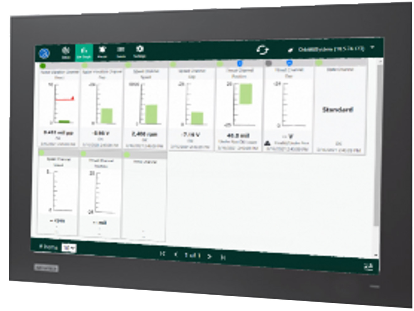 The Bently Nevada Orbit 60X/EXD external touchscreen display utilizes an industrial computer connected to the system interface module via Ethernet. The computer and display can be placed where needed for each application. The 10.4in, 15in, and 21.5in VGA touchscreen displays are designed for excellent viewing quality in industrial applications.