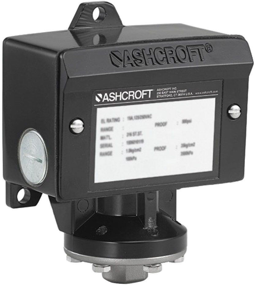 The Dwyer 1950 series pressure switches combine the best features of the popular Dwyer 1900 series pressure switch with an integral explosion-proof and weatherproof housing, making it an exceptional value for either application. It is CE, UL and CSA listed, FM approved for use in Class I, Div 1, Groups C and D, Class II Groups E, F, and G and Class III hazardous atmospheres. The NEMA 3, 7 & 9 approved enclosure includes a drain plug and O-ring seal in cover making it both raintight and weatherproof. Electrical connections are easily made by removing front cover. For convenience the set point adjustment screw is located on the outside of the housing. Twelve models offer set points from .03 to 20″ w.c. (7.5 to 5 kPa) and from .5 to 60 psi (0.035 to 3.5 bar). The unit is very light and compact – about half the weight and bulk of other explosion-proof or weatherproof switches with separate enclosures.