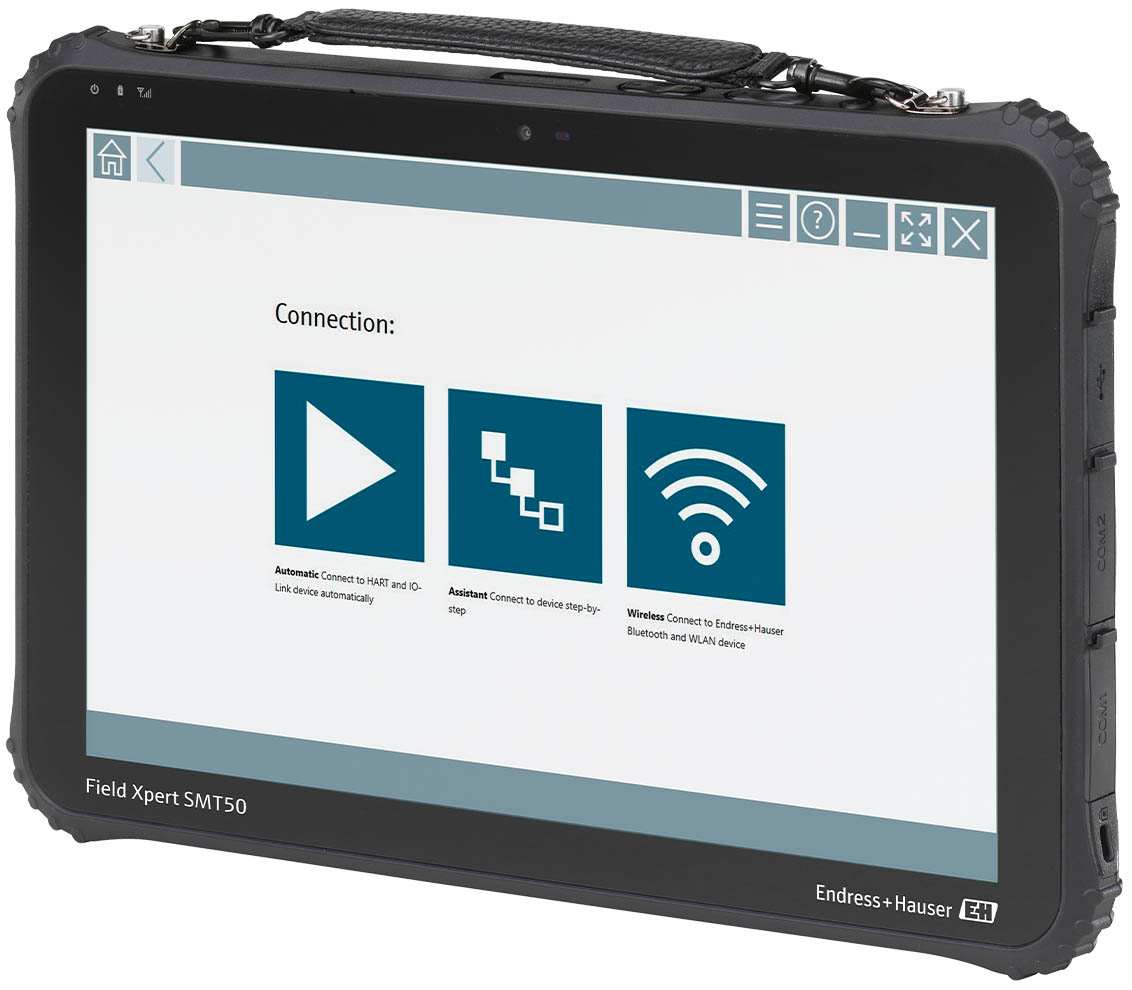 The E+H Field Xpert SMT50 HART field communicator enables mobile plant asset management in non-hazardous areas and is suitable for commissioning and maintenance. It manages Endress+Hauser as well as third-party instruments with a digital communication interface and documents the progress of the work. The SMT50 is designed as a complete solution with a pre-installed driver library and is an easy-to-use for managing field devices throughout their entire life cycle.