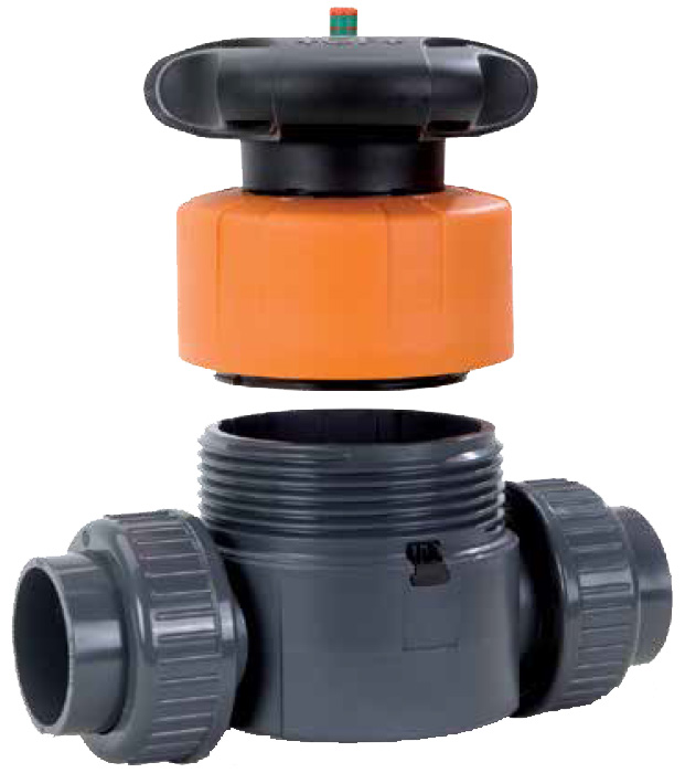 The Georg Fischer 5-Series Type 514 Diaphragm Valve utilizes a threaded bonnet to valve body connection, in place of traditional metal body bolts. The all-plastic connection of the 5-Series Type 514 has a higher thermal expansion rate than such metal components, eliminating the need for retorquing after hot line shut downs. The plastic material is also ideal for applications in which corrosive chemicals are present in the atmosphere. The elimination of valve body bolt holes also decreases the grade of the weir and optimizes flow path. This significantly increases the Cv value when compared to traditionally designed diaphragm valves.