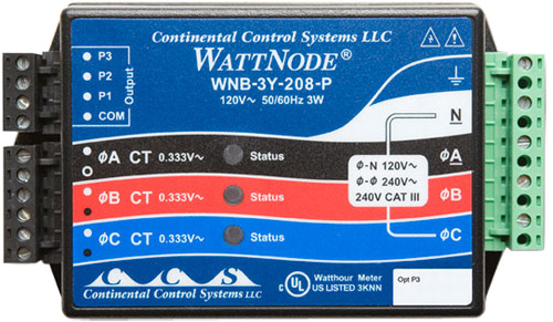 The HOBO WattNode 1 / 2 / 3 Phase Wye kWh Transducer Sensor provides accurate measurements at low cost to meet your needs for sub-metering, net-metering, energy management, and performance contracting applications. This WattNode Wye-connection kWh Transducer works with Magnelab AC Current Transformers and a Pulse Input Adapter to provide True RMS kilowatt hours of energy used, even for loads with non-sinusoidal waveforms. Because these sensors tie directly into the line, they should be used only by qualified personnel. This model supports a 1,2, or 3-phase wye-connection of 208/240 VAC.