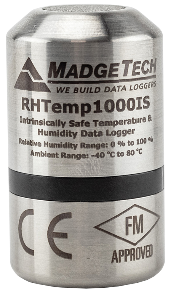 The MadgeTech RHTemp1000IS Humidity & Temperature Data logger is an Intrinsically Safe humidity and temperature data logger. The RHTemp1000IS is FM Approvals certified as Intrinsically Safe for Class 1, Division 1, groups A, B, C, and D and non-incendive for Class 1, Division 2 groups A, B, C, D and hazardous environments. This certification makes the device ideal for EtO Sterilization, environmental studies, and numerous other hostile environment applications.