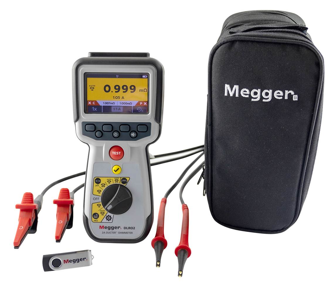 The DLRO2 is a tough, hand-held 2 Amp low resistance ohmmeter. It’s designed to provide fast, accurate, repeatable measurements, even in electrically noisy locations. The DLRO2 is the latest in a long line of instruments to proudly display the Ducter™ brand, the Ducter™ testers being as well-known and relied upon as Megger insulation resistance testers. For the utility or industrial user, a high level of safety is provided with a CATIII 600 V/CATIV 300 V rating to IEC61010. In addition, the instrument can protect itself from inadvertent connections to up to 600 V without blowing a fuse, thereby avoiding essential time lost due to repairs or finding a replacement fuse. When working outside, the IP54 rating ensures that neither rain nor dust will prevent testing. The DLRO2 measures low resistance values across a wide range of applications, from railways and aircraft to the resistance of industry components