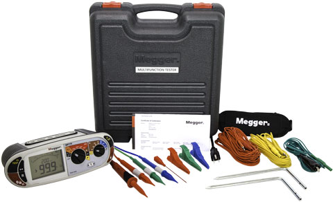 The Megger MFT70 Multifunction Tester is designed for testing low voltage electrical installations to fulfill the requirements of NFPA70 and the National Electrical Code. It provides all the tests required to complete the necessary electrical certification for industrial, commercial and domestic fixed wiring installations. Testing capabilities of the MFT70 include 1kV insulation, ground resistance (2P, 3P and stakeless), TRMS voltmeter, current, frequency, temperature, GFCI tester, and phase rotation indicator.