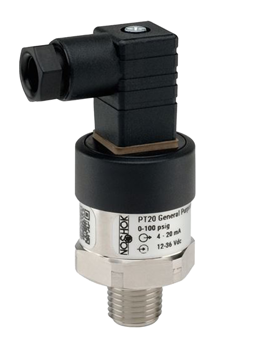 The NOSHOK PT20 Series Pressure Transmitter is built as a general purpose, fixed ranger sensor for use in a wide range of industrial applications. The PT20 Series provides reliable readings in versatile environments, with ±0.50% accuracy and an expanded list of ranges from vacuum through standard gauge pressures of 1 to 15000psi.
