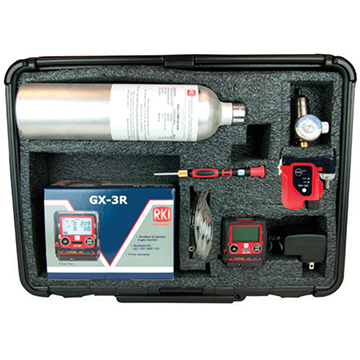 The RKI Instruments GX-3R Gas Detector is the worlds smallest 4 gas monitor weighing only 3.52 ounces and can comfortably be clipped within a worker’s breathing zone (2.2″ W x 2.55″ H x 1.02″ D). It simultaneously monitors and displays LEL combustibles, O2, CO, and H2S. The kit contains a GX-3R for LEL/O2/CO/H2S, 100-240 VAC charger, tubing, screwdriver and carrying case. You can choose the options of including 34AL cylinder CH4/O2/H2S/CO with a 0.25 LPM regulator and/or a RP-3R with a 10ft hose & probe.